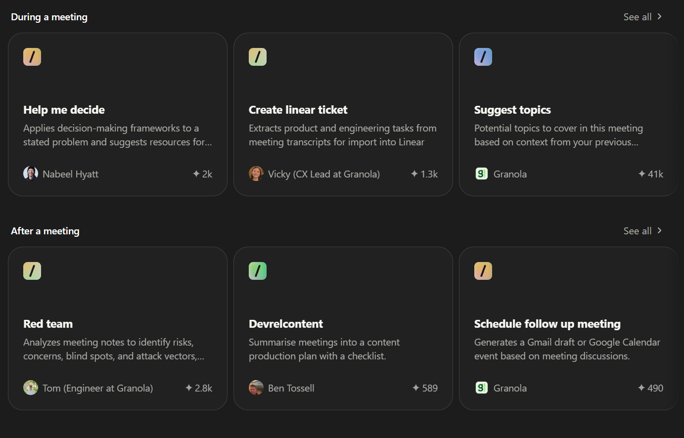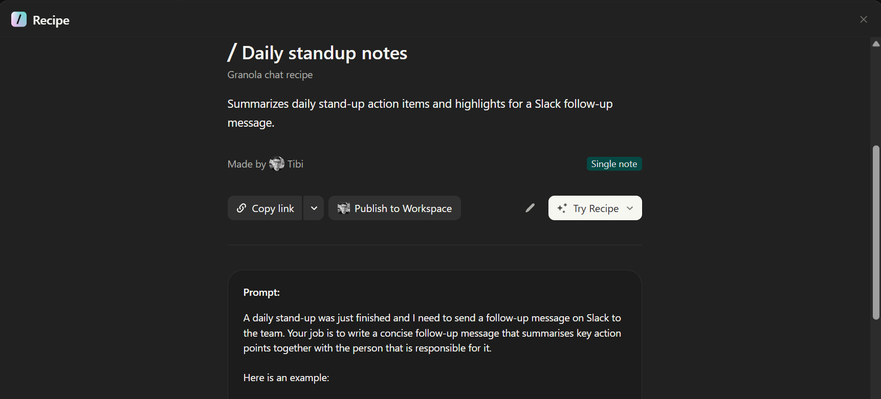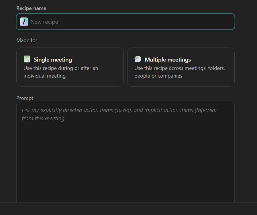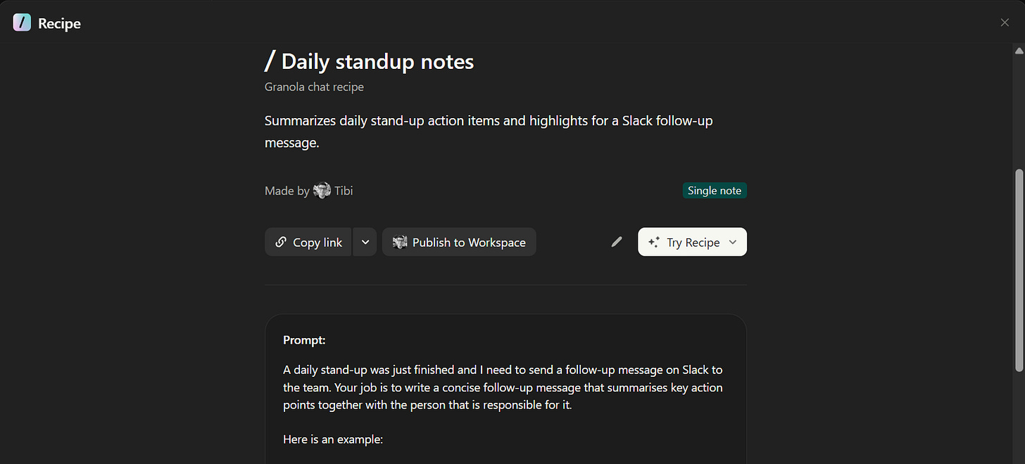 Granola also has a custom recipe creator (similar to a prompt that you can quickly trigger).